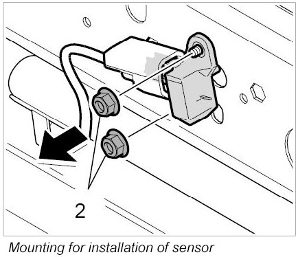 1. Position sensor on retaining bracket and screw it down with the fastening nuts -2-. M6: 8 Nm (6 ftlb.) ± 1 Nm ( ± 0.5 ftlb.)