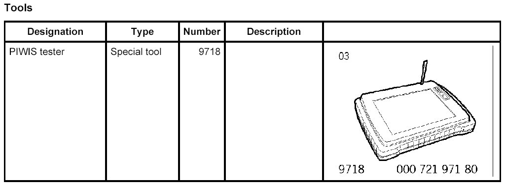1.1. PIWIS tester 9718 must be connected and switched on.