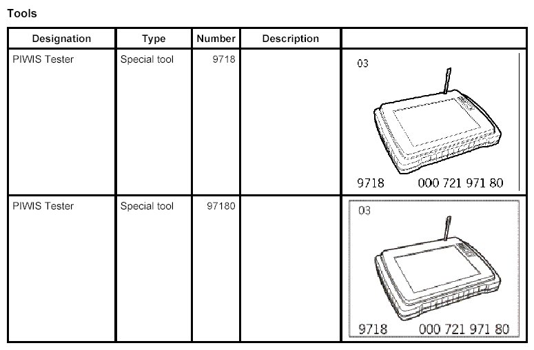 - Carry out tests only with the PIWIS Tester 97180 diagnostic module; do not use test lamps, voltmeters or ohmmeters.