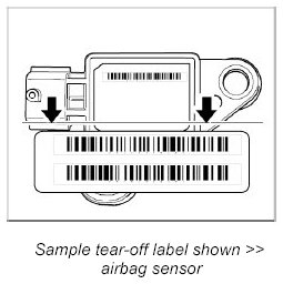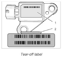 INFORMATION: If a new component (e.g. sensor, airbag control unit, airbag unit) of the airbag system has to be installed, the new component will be supplied with a barcode sticker (tear-off label).