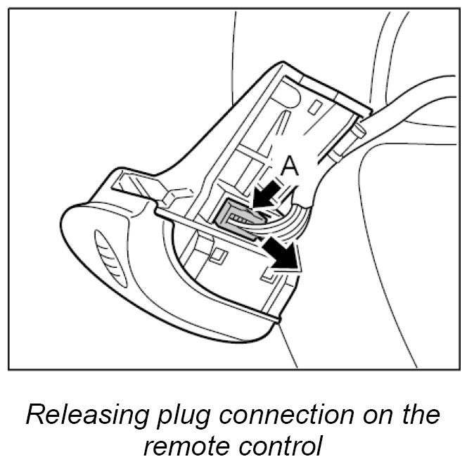 2. Release the electric plug connection on the remote control -A- and disconnect it.