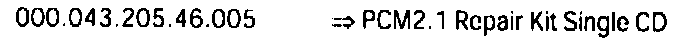 PCM2.1 Control Unit - Spare Parts Requirements