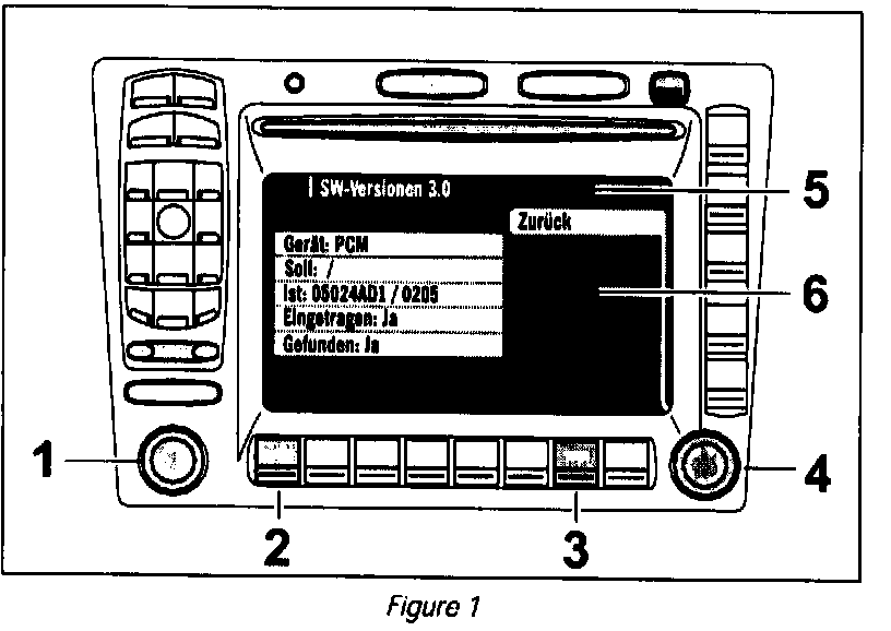 4. Press the right rotary knob (--> Figure 1 -Item 4-) in the "SW versions" display to select the "PCM" menu item.
