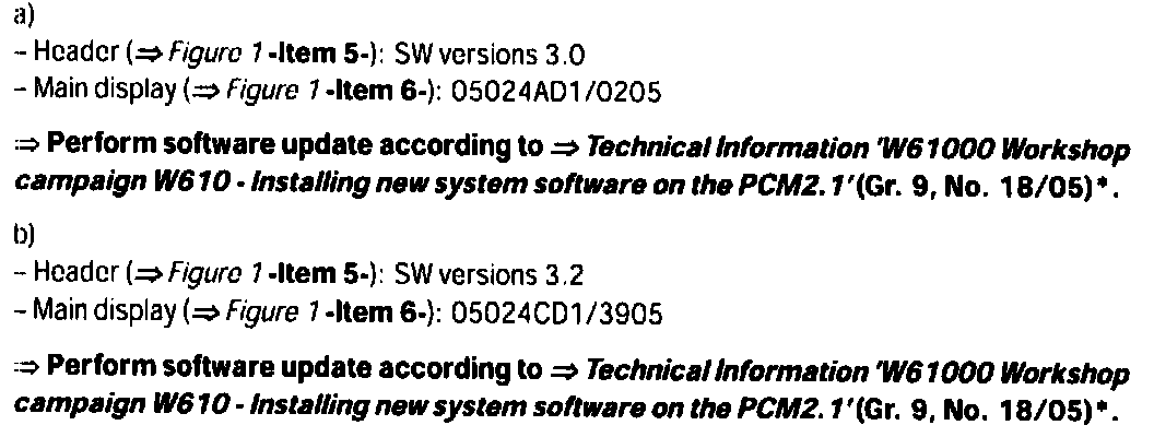 Action Required: Following installation of a PCM2.1 operator control unit with one of the specified part numbers check the software version of the PCM2.1 operator control unit.
