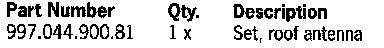 For improved AM reception, the vehicles mentioned above can be retrofitted with a roof antenna. Once installed one of the two ultra-shortwave antennas mill be omitted from the windshield (antenna diversity).
