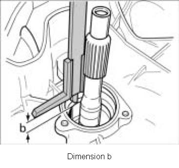 4. With a depth gauge, measure the dimension -b- from the housing to the contact surface of the ball bearing (e.g. dimension b =26.8 mm).