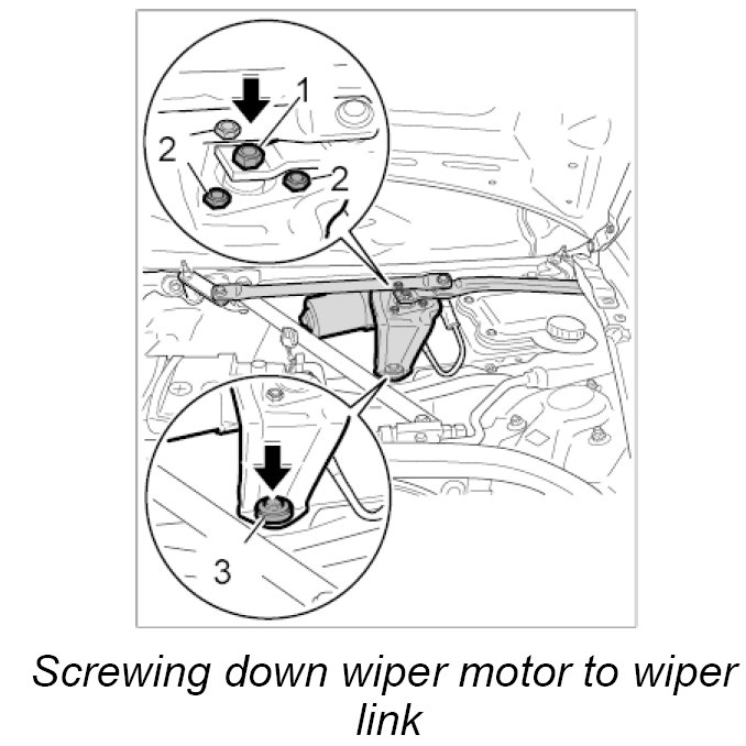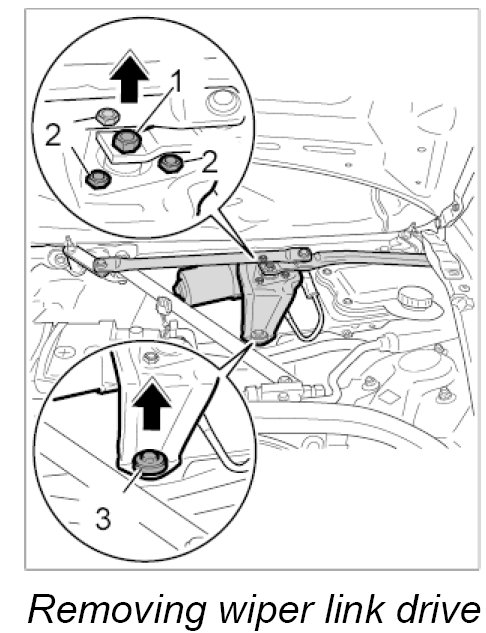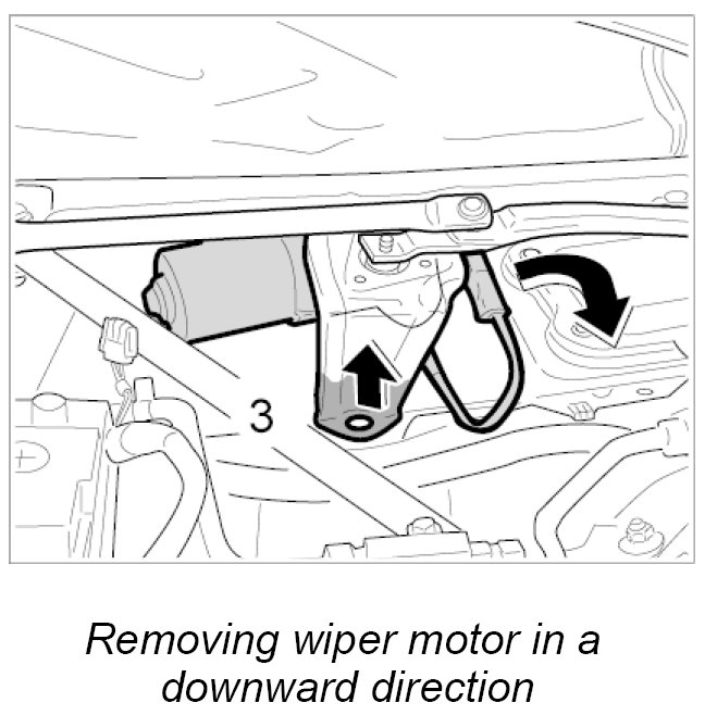 3. Carefully raise the wiper link and remove the wiper motor downwards.
