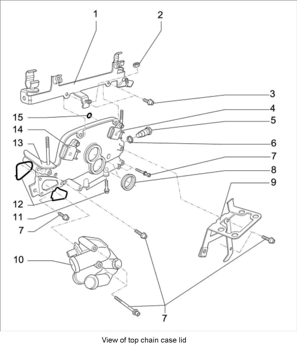 Note: Check sealing rings on top chain case lid and replace if necessary.