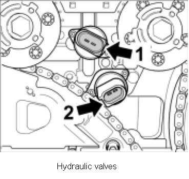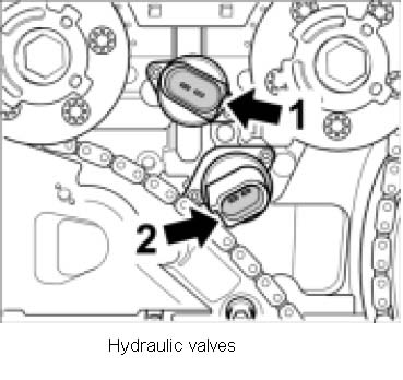 3. Insert hydraulic valves carefully into the timing chain housing with rotating movements. Align hydraulic valves according to removal position.