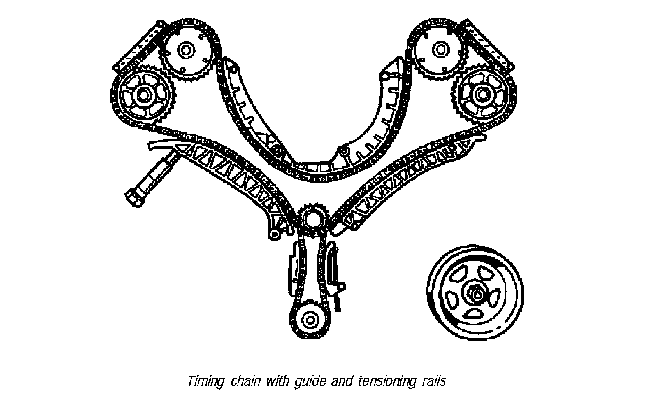 Note: If the timing chain has to be removed or replaced, check the guide and tensioning rails for wear and scoring and replace them if necessary.