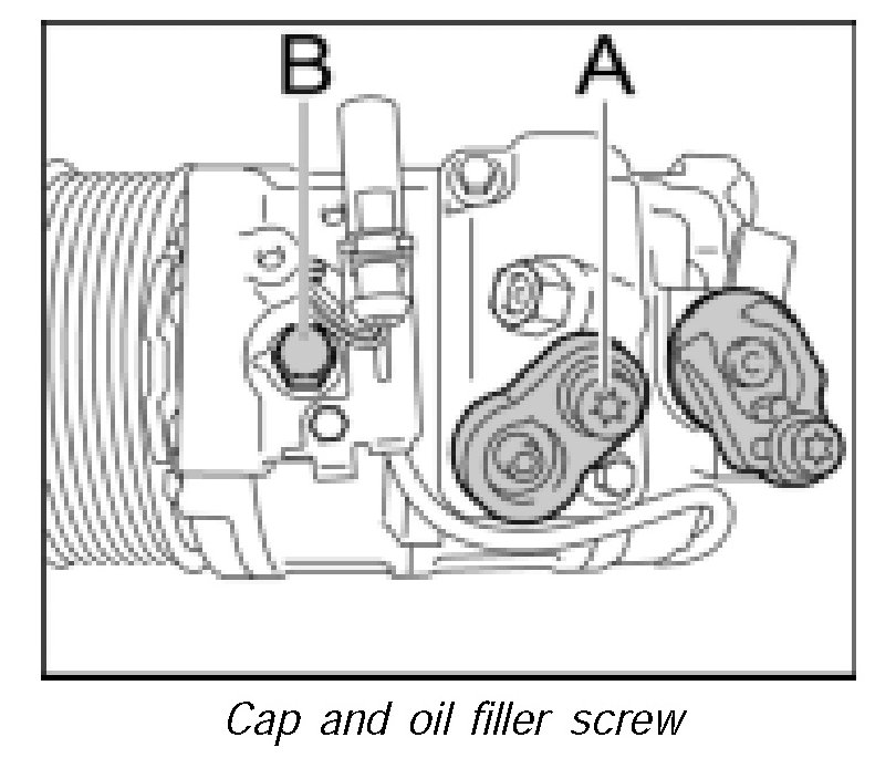 5. Use fastening screws from the new compressor. Replace O-rings and wet the new rings with refrigerant oil.