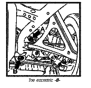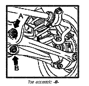 Toe is adjusted at toe eccentric -B- !