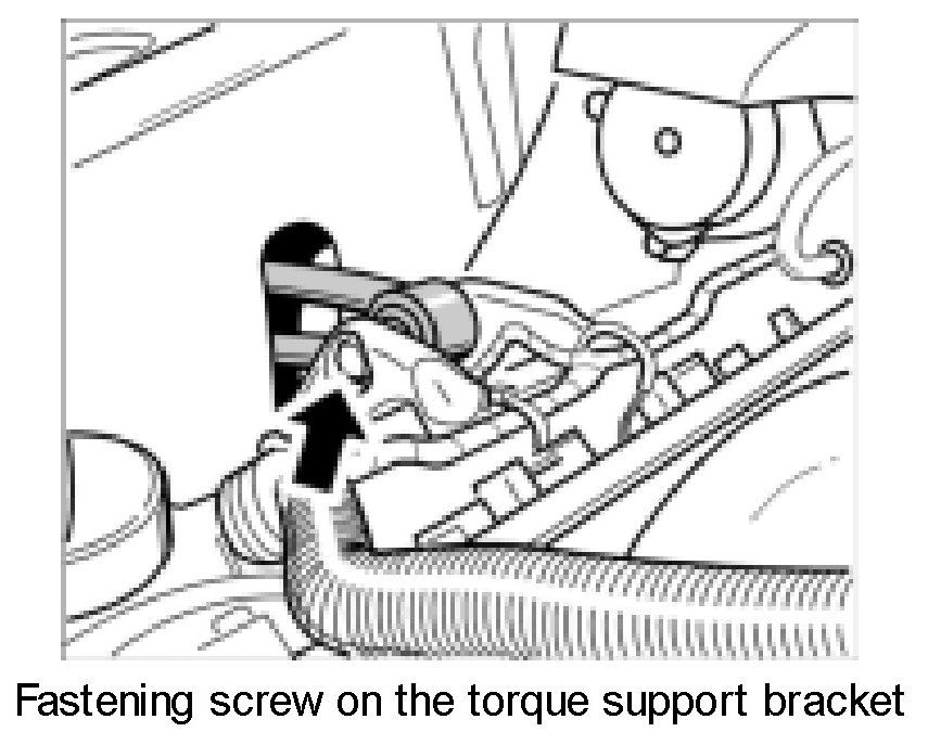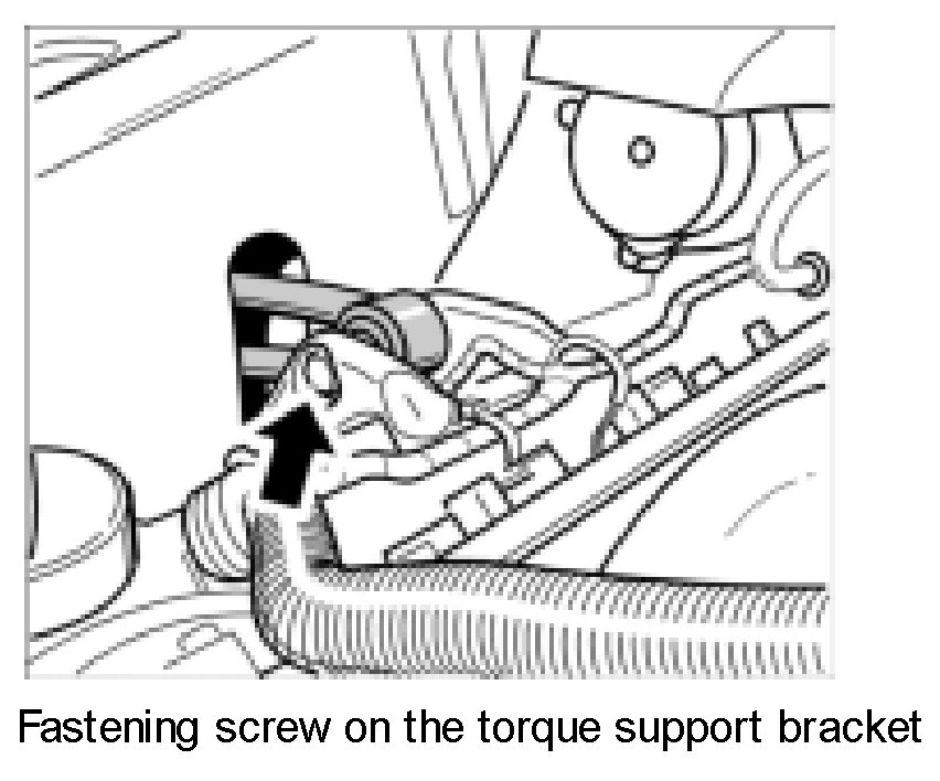 1. Loosen the torque support. To do this unscrew the fastening screw on the torque support bracket.