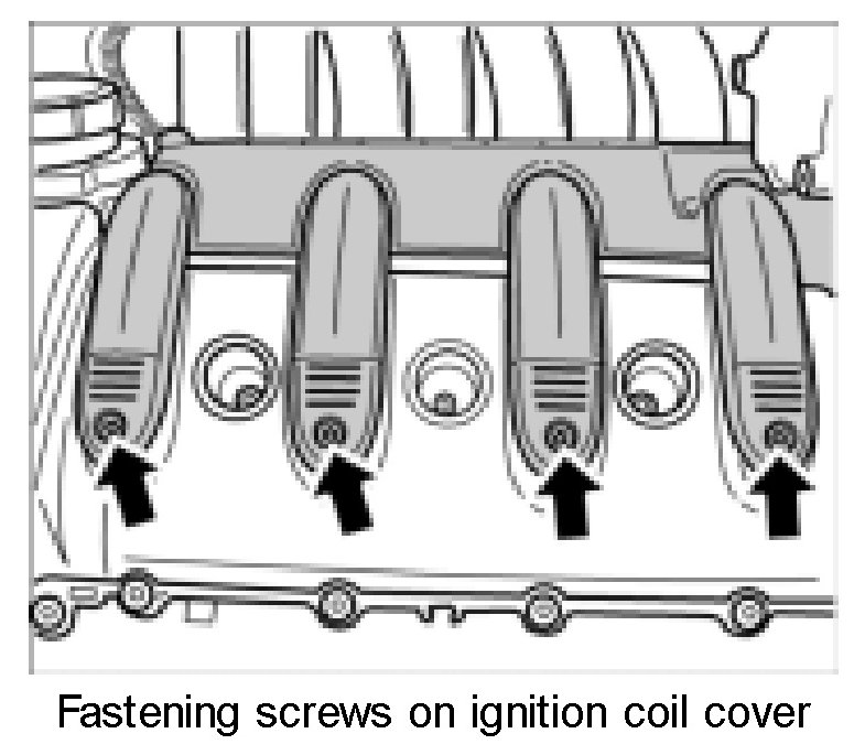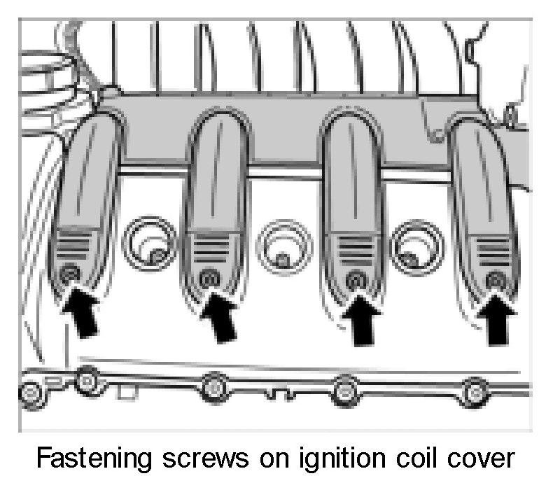 1. Unscrew the 4 fastening screws on the ignition coil cover.