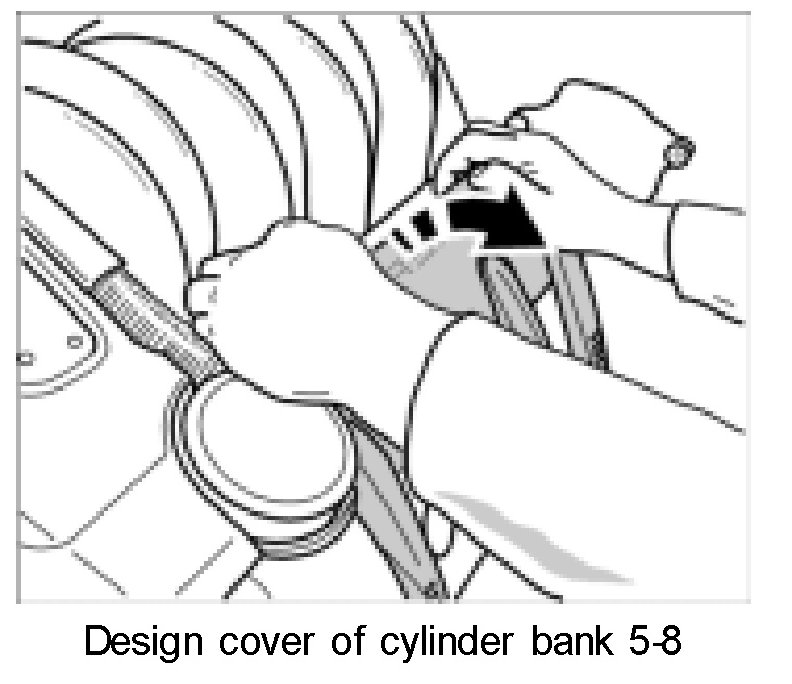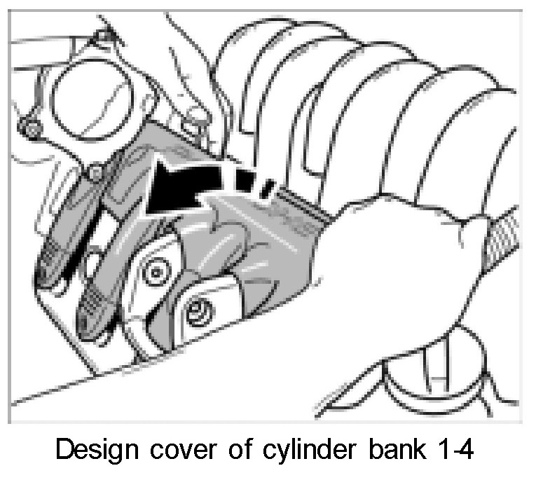 2. Remove design cover of cylinder bank 5-8. To do this, lift the cover slightly with both hands at the side pointing towards the intake system until it is released from its bracket.