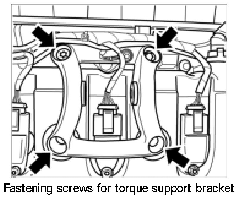 18. Reinstall torque support. Install the fastening screw (M10 x 85) with a new fastening nut on the bracket. Tightening torque 44 ft.lb.