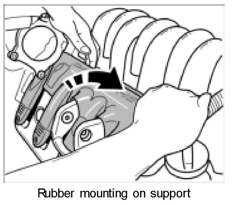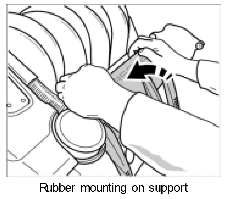 10. Then press in the two rubber mountings on the support. The rubber mountings must be felt to engage.