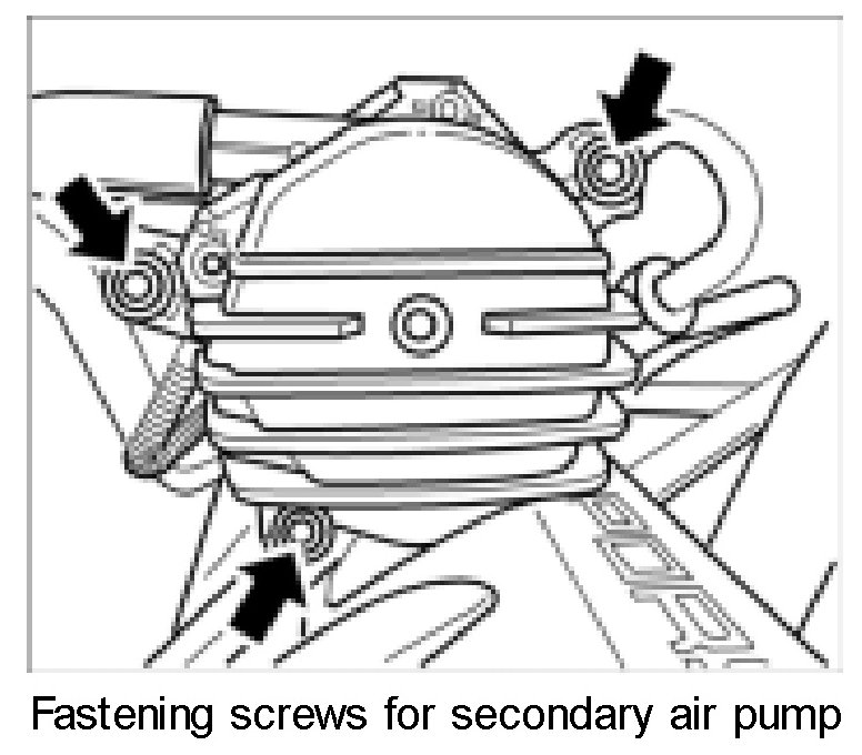 17. Reinstall secondary air pump. Tighten the 3 fastening screws. Tightening torque 7.5 ft.lb.