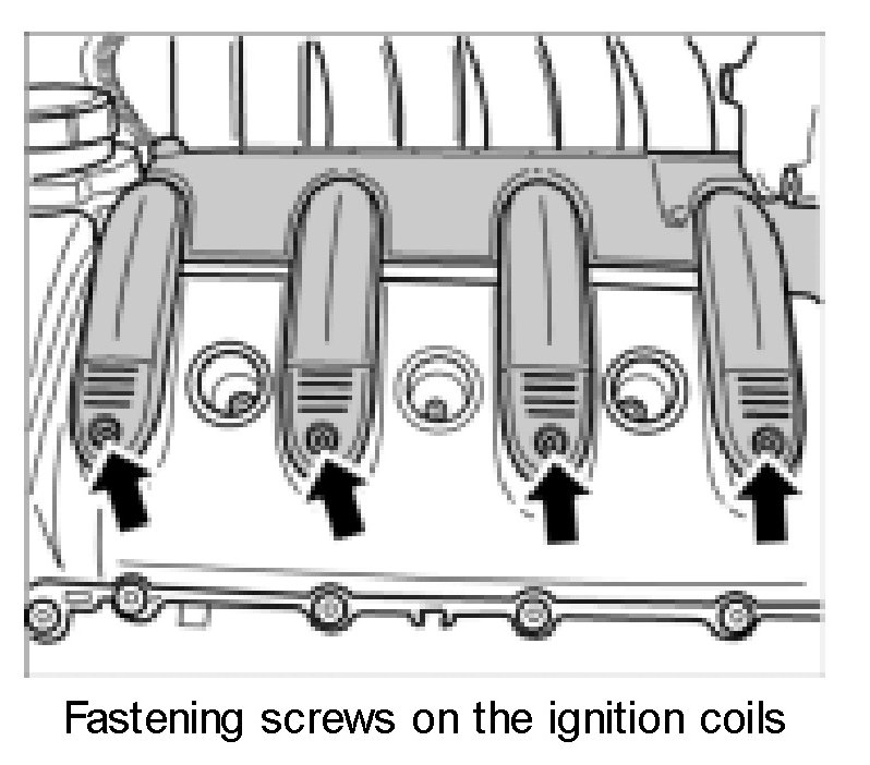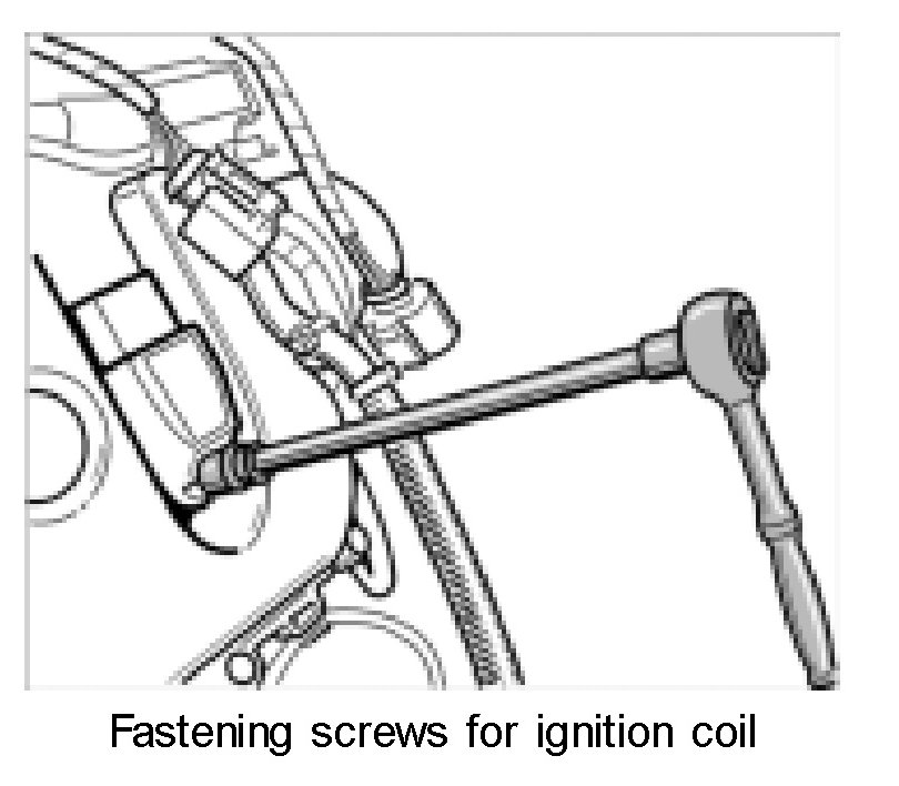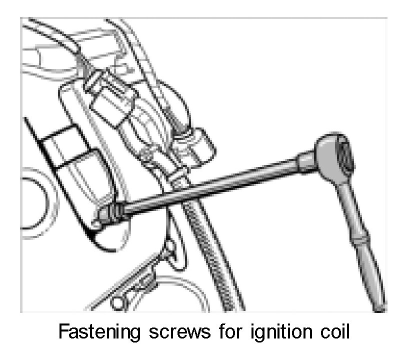 11. Tighten the 4 fastening screws on the ignition coils. Tightening torque 3.5 ft.lb.