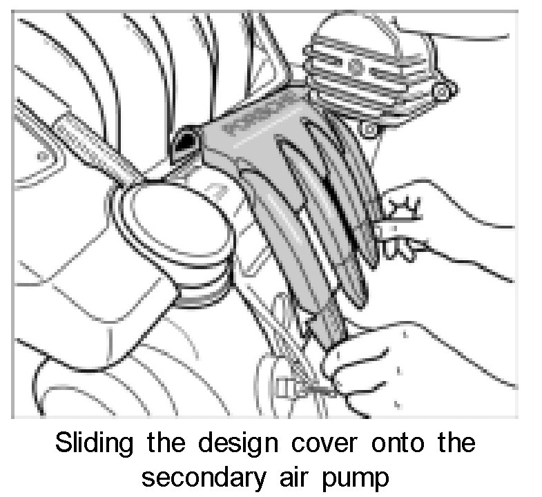 NOTE: Place a cloth between design cover and support for secondary air pump to avoid scratching cover.