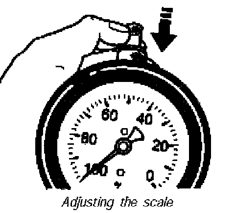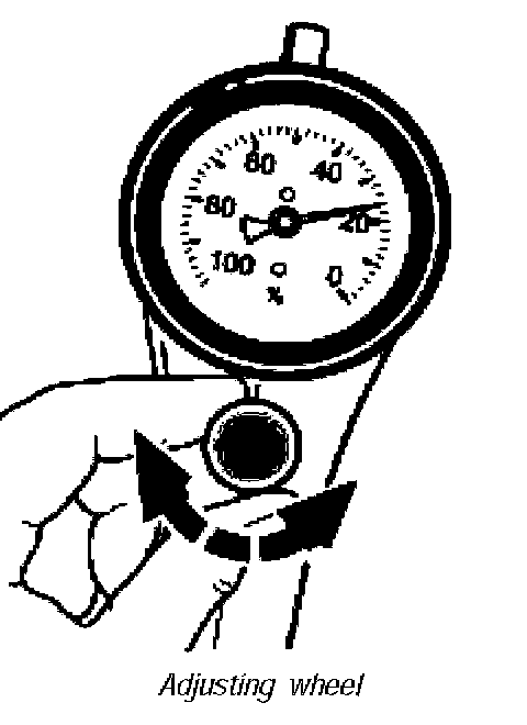 4. Turn the adjusting wheel until the scale pointer is at the "cal." marking or "23%". The pressure is then equal in the two test chambers of the tool.