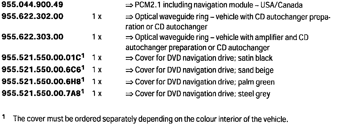 Check software version of installed PCM2.1 system. If the version is only "Model Level A", it must be updated to "Model Level B" using the software (955.044.900.07) provided (see also Technical Information PCM2.1 navigation update).