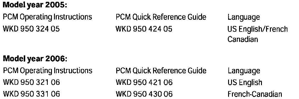 The Operating Instructions and Quick Reference Guide for the PCM2.1 are not included in the scope of delivery and must be ordered separately through the parts department.