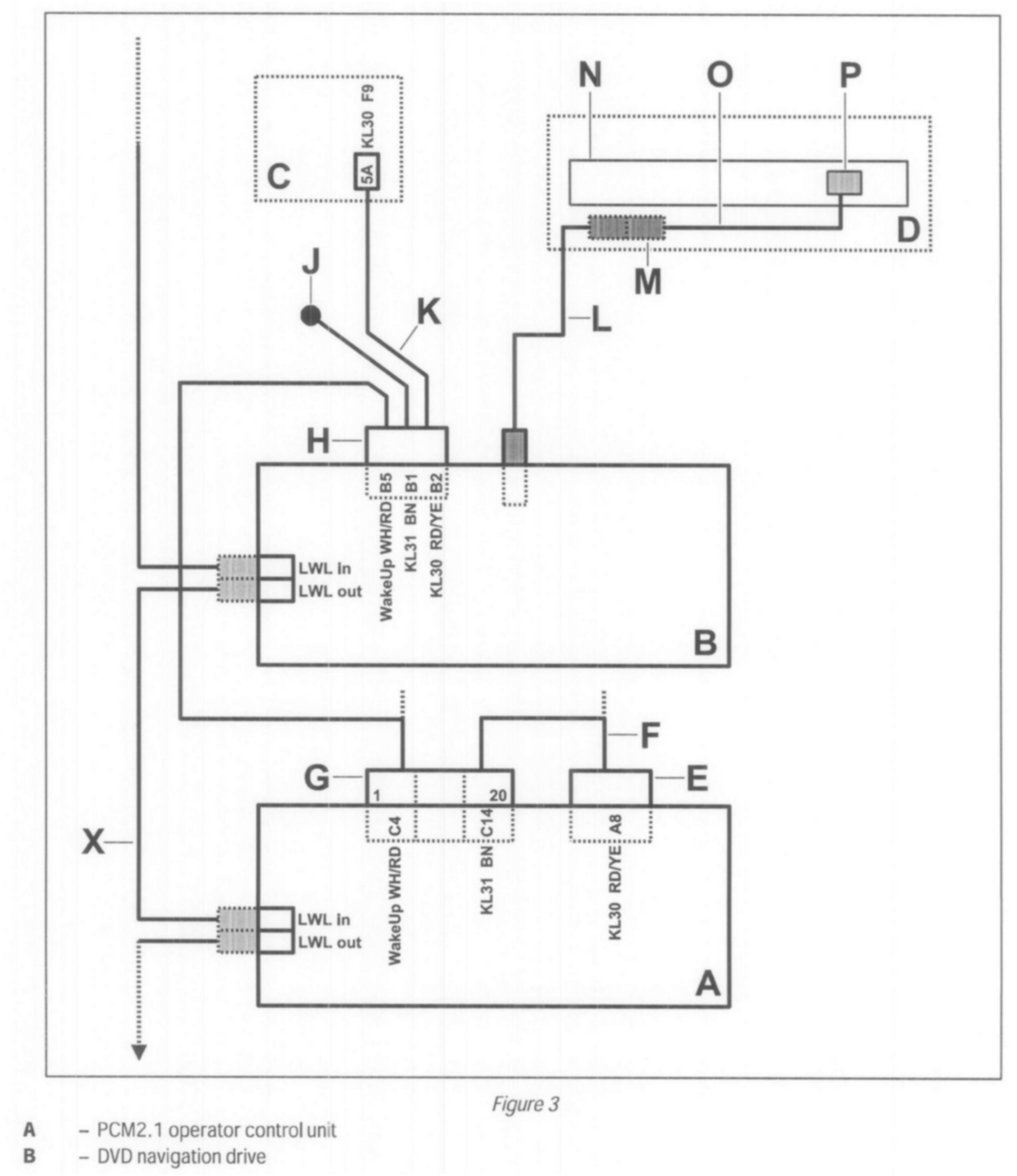^ Separate DVD navigation drive under the passenger seat. As a result, the CD drive in the PCM2.1 can be used as a pure audio CD drive.