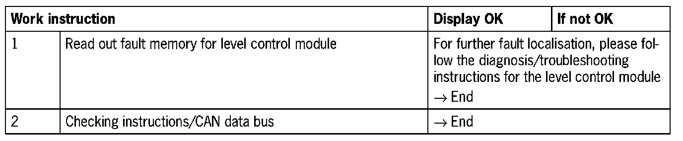 - Signal from level control module does not appear on CAN drive (no signal/communication)