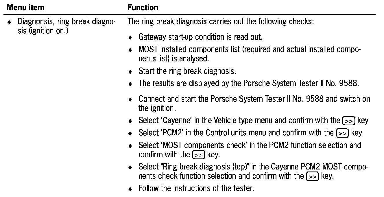 NOTE: When there is a customer complaint or identifiable problems but no fault code entries, firstly the 'MOST component check' is to be selected in the PCM2 function selection menu and then the 'MOST system check' is to be carried out.