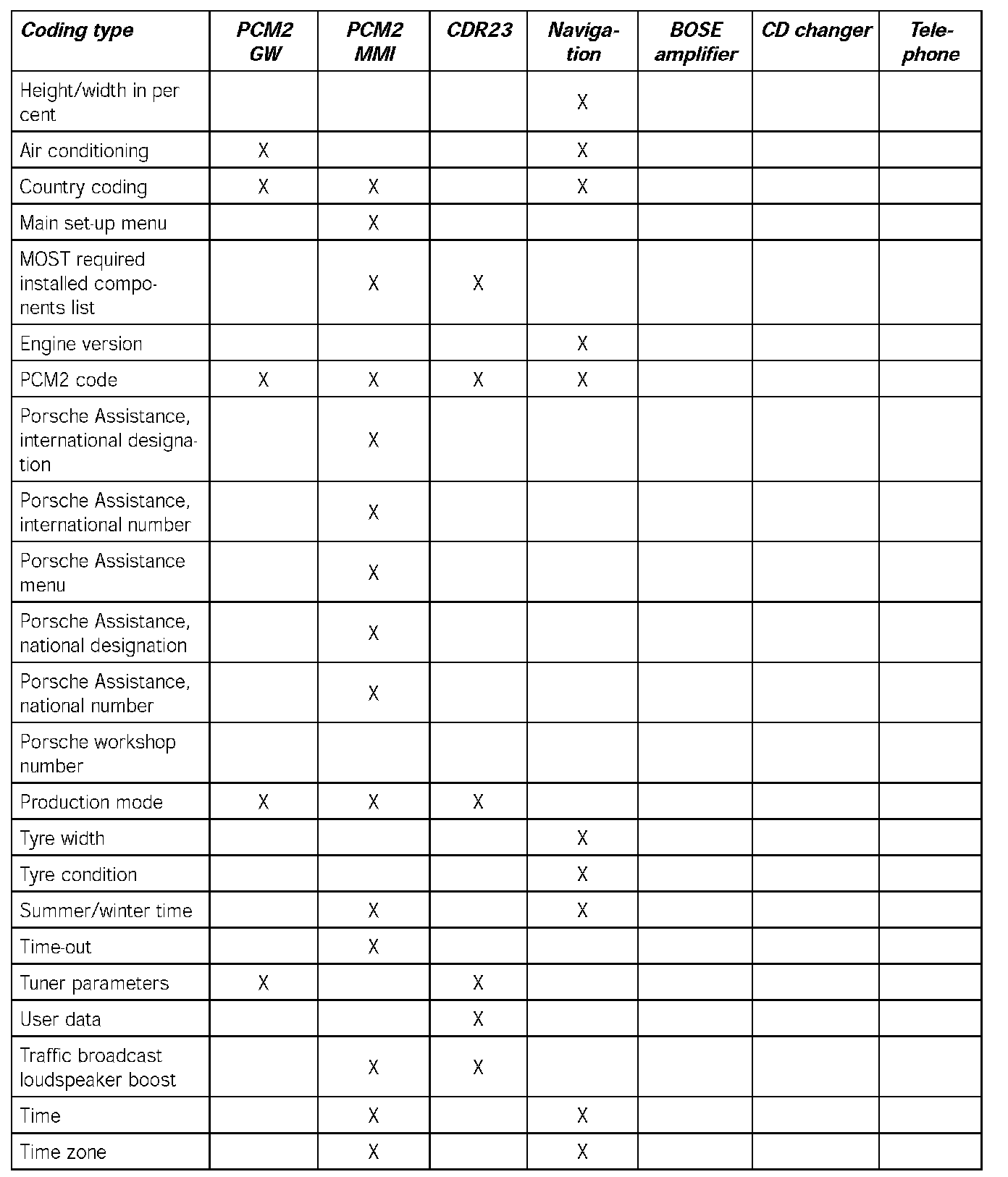 - When the PCM2 is replaced, the coding must be performed in accordance with the connected MOST control units.