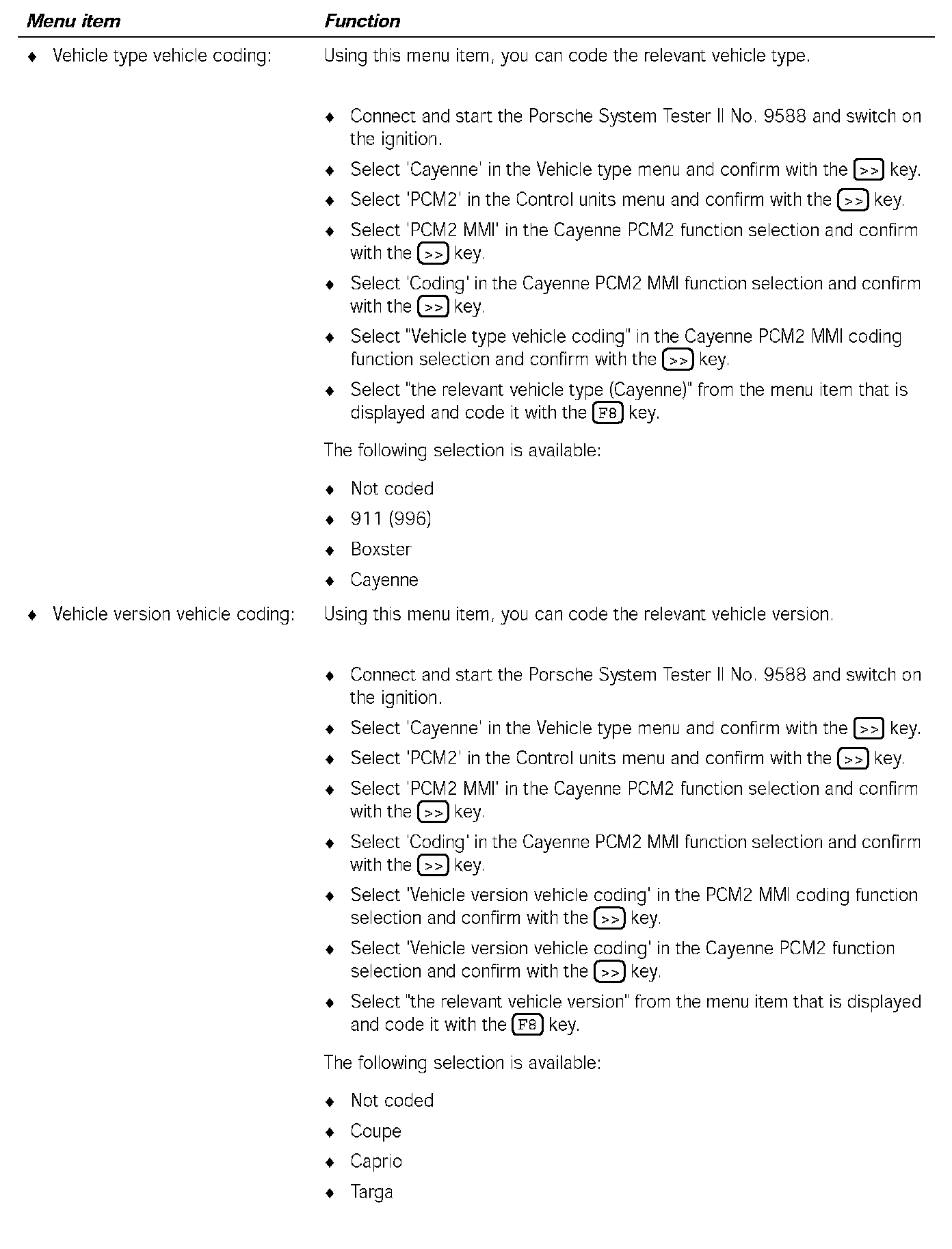 2. Select 'Cayenne' in the Vehicle type menu and confirm with the [>>] key.