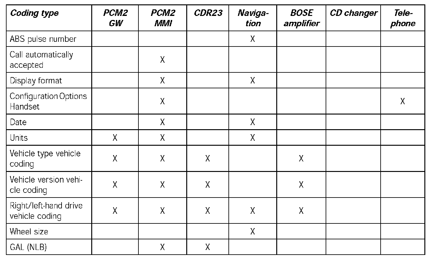 - When the PCM2 is replaced, the coding must be performed in accordance with the connected MOST control units.