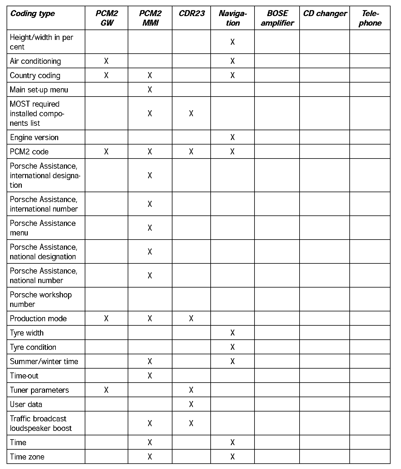 Coding Table