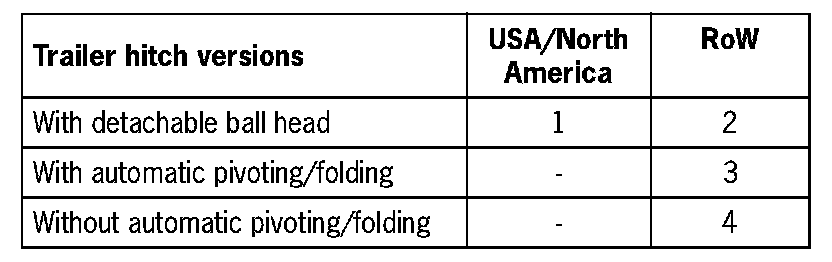 - The 'No automatic tolding/pivoting' option can be coded if there are doubts about safety. The button must be kept pressed until the trailer hitch is completely retracted or extended.