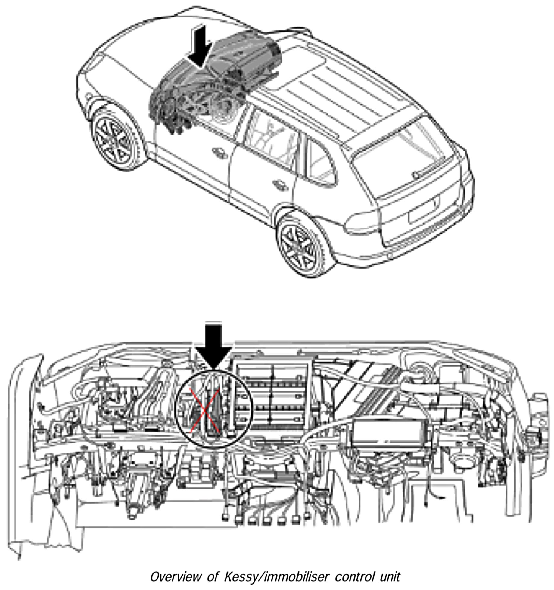 - If the Kessy control unit is replaced, it must be programmed using the Porsche System Tester. This will ensure that the control unit is taught for the relevant vehicle, country version and equipment.