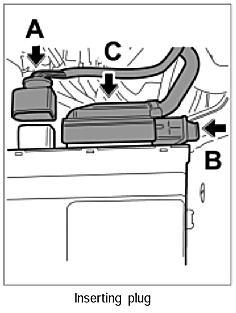 1. Push on plug -arrow C- and lock it -arrow B-.