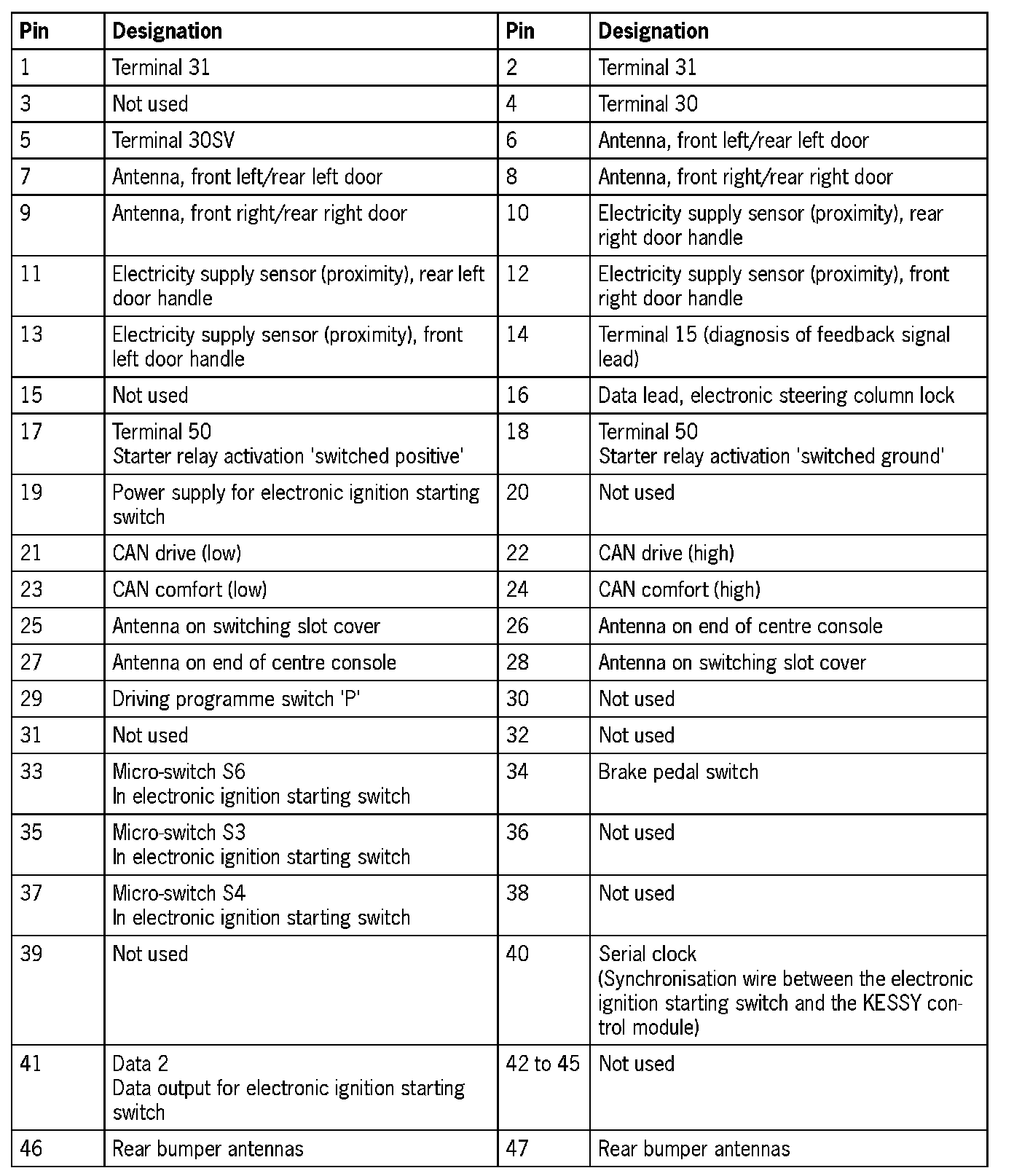 Plug A and plug B for KESSY control module