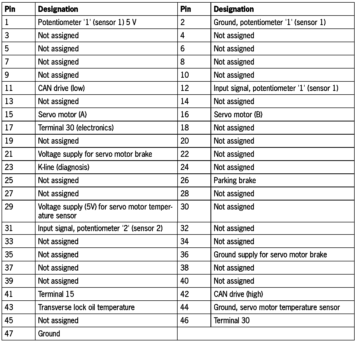 Connector Assignment - Transverse Lock