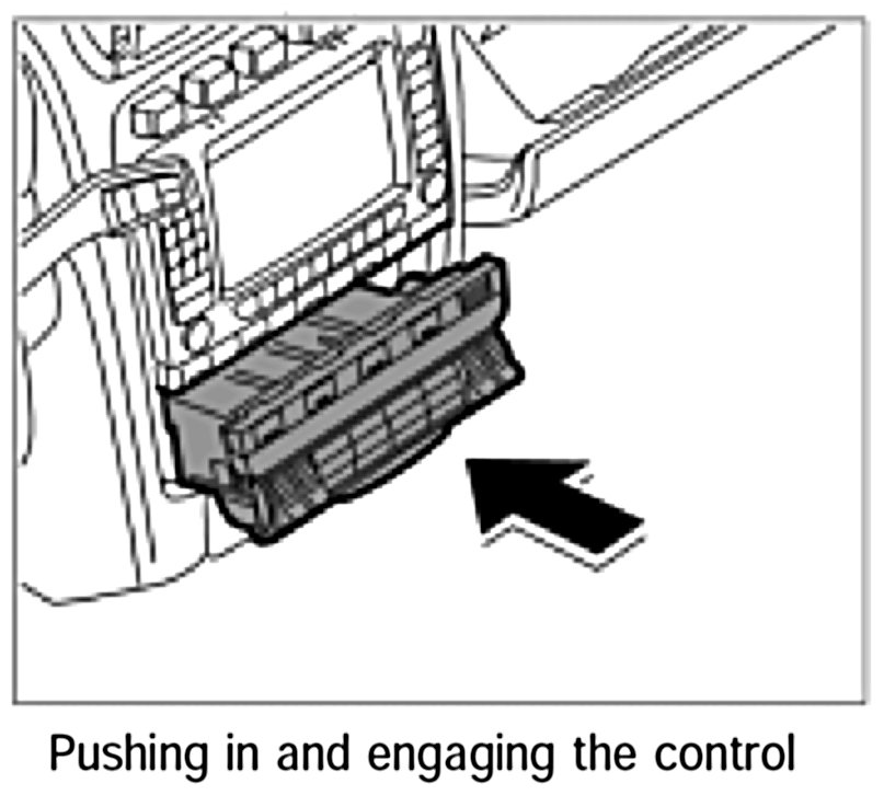 2. Carefully slide the control into the installation slot, paying attention to the electrical leads. The left and right latches must engage.