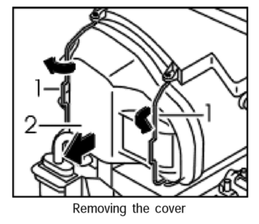 1. Open the two locking clips -1- and remove cover -2-.