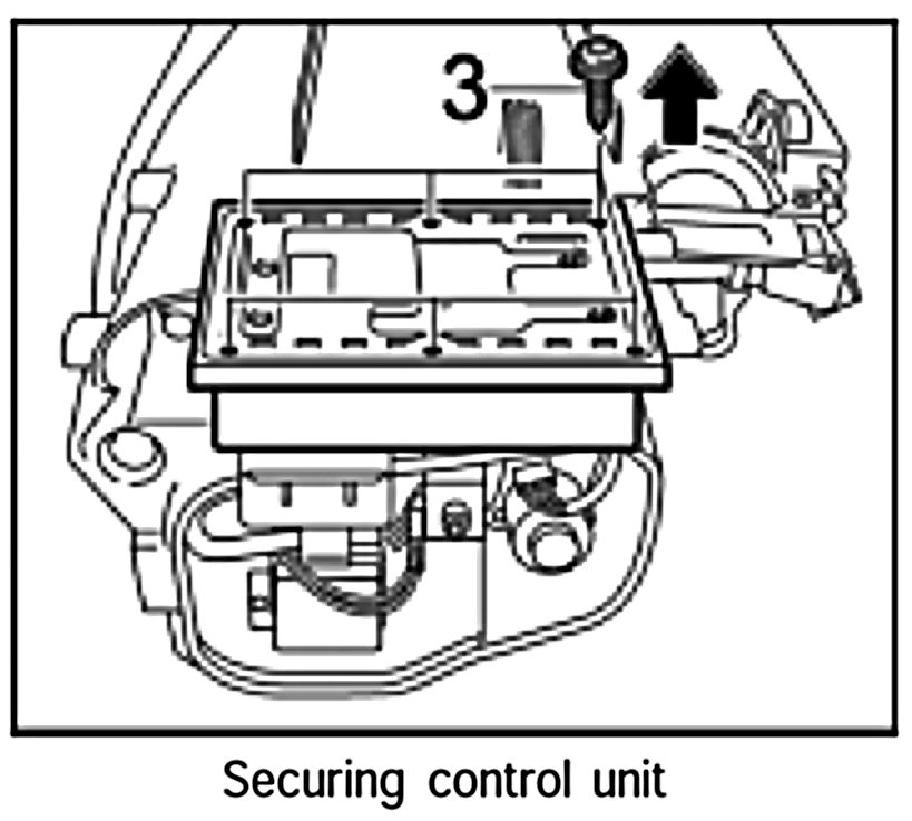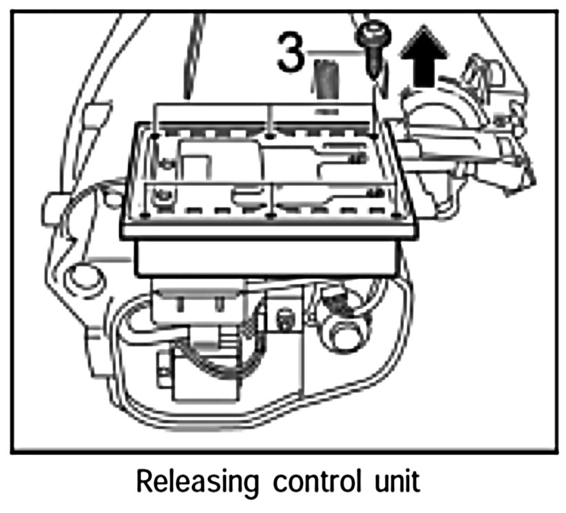3. Remove all six fastening screws -3- and pivot up the control unit.