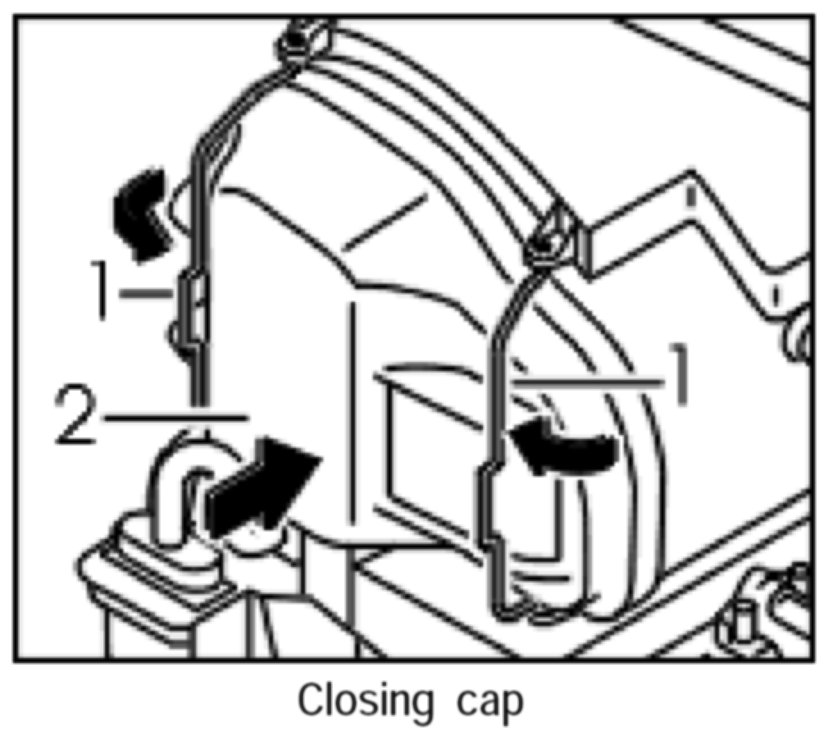 3. Position cap -2-, press on and close locking clip -1-.
