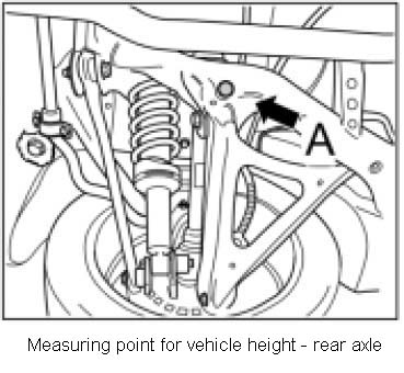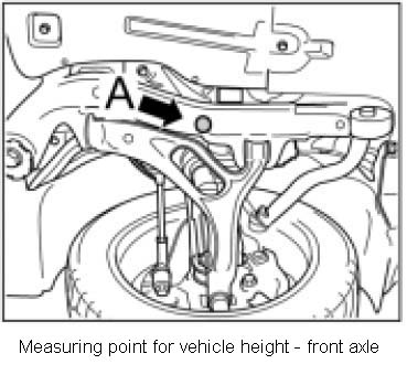 The measurement is made from the wheel contact area to the bottom edge of the side member of the suspension subframe -A- (in front of drain bore at connection point of control arm to suspension subframe).