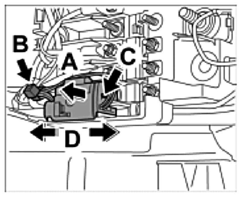 19. Remove plug connection (Tyco switch) from bracket -Arrow A-.