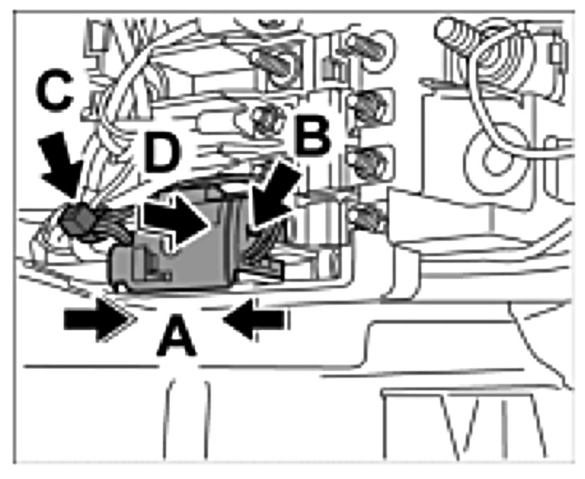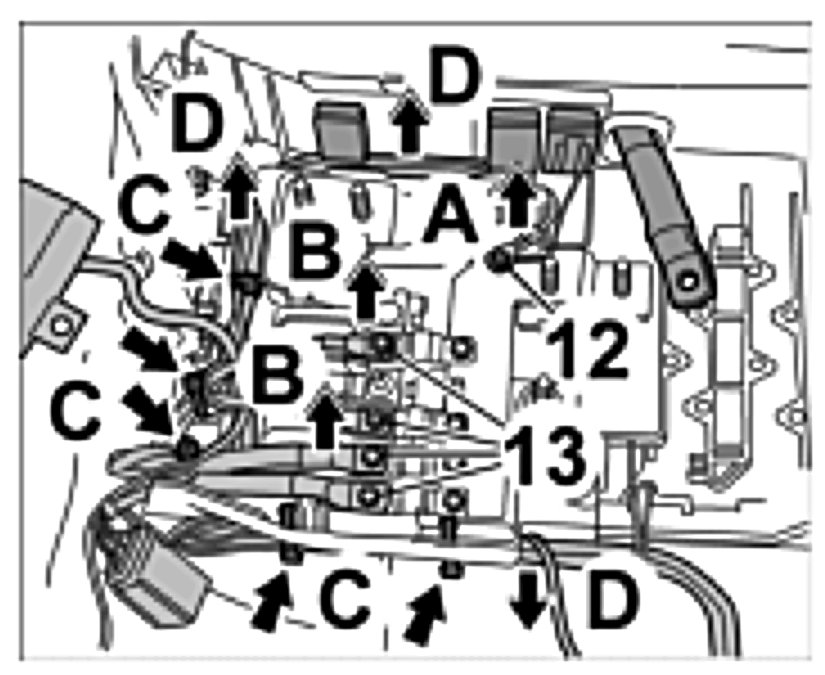 18. Cut tie-wraps -C- and remove lines -Arrows D-.