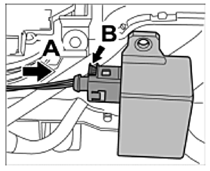 13. Insert fuse carrier -Arrow A- until locking tabs -B- are felt to engage.