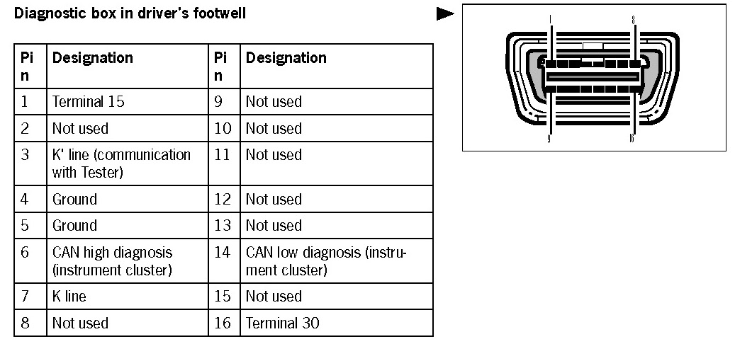 - Pin 13 'input for terminal 30 power supply (fuse carrier at left of dashboard, F36)'