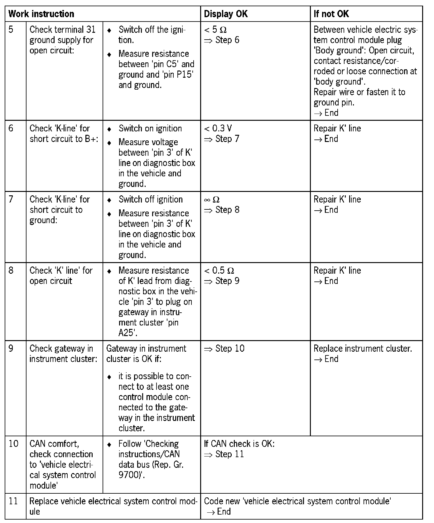 - 'K lead' to 'gateway' in instrument cluster does not function