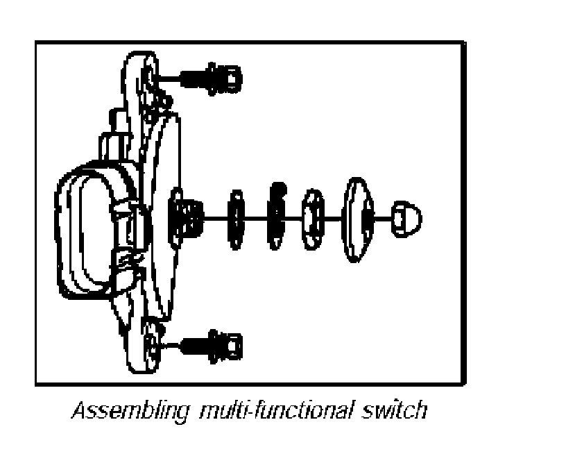 6. Remove cap nut, cap, nut with tab washer and rubber washer on the multi-functional switch. Assembling multi-functional switch
